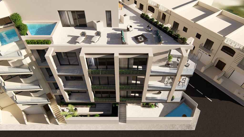 Maisonette – Located in the sought-after area of Balzan, within a new luxurious complex, close to all amenities, a ground floor 176 sqm 3-bedroom maisonette is available for sale. This very well-planned property consists of a 138 sqm open plan internal area including a kitchen/living/dining area, 3 bedrooms, main bathroom and a large private 38 sqm back terrace with a pool. Optional interconnecting parking spaces are available within the complex. The maisonette is to be sold on plan and finished, including doors and bathrooms, with an expected completion date set for June 2027. It will make a beautiful family home.