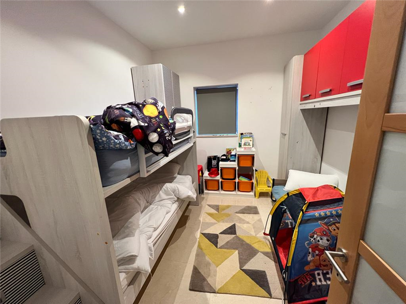 Brand new and highly finished, this 3-bedroom, 2-bathroom first-floor apartment is set in a small block of just two units. The home is serviced by a lift and is fully air-conditioned throughout. The bright open-plan kitchen/living/dining area leads to a front balcony overlooking an ODZ area. The kitchen is fitted with Bosch appliances and Grohe fixtures, while the living room features an Italian-made sofa bed and a Smart TV. The property includes a very large main bedroom with ensuite and balcony, a twin bedroom, and a single bedroom with a study area. Additional features include a main bathroom, internal yard, box room, and a washroom with access to the roof. A modern, spacious home ideal for comfortable long-term living.