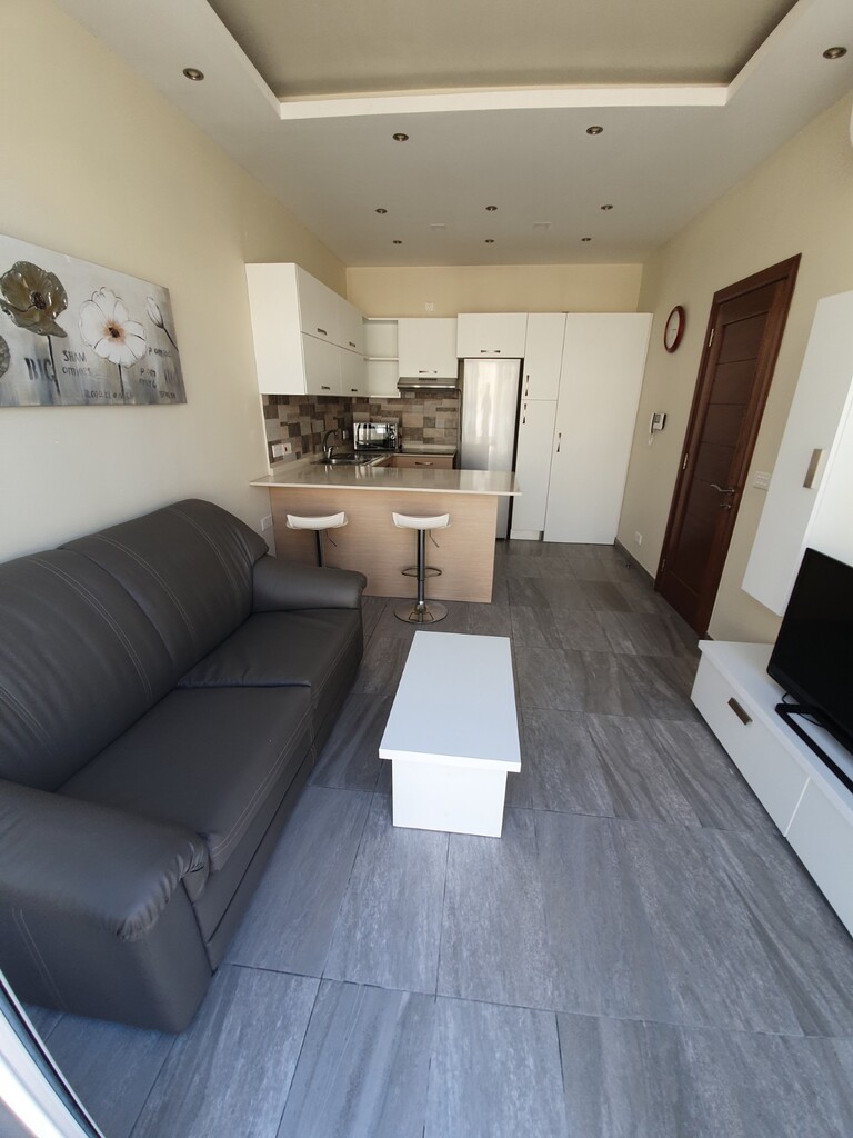 ST PAUL’S BAY – A bright and well-proportioned 1-bedroom apartment set on the 6th floor of a modern block built in 2020, a mere short walk from the seafront and the main road is on the market for rent. This well-presented home comprises a generous open plan living/dining area equipped with 3 sofa beds(two double-seater & one triple-seater), a fully equipped kitchen with modern appliances, a spacious double bedroom with a king-size bed, and a large bathroom with a walk-in shower and washing machine. A private balcony with outdoor seating and space for a small BBQ adds to the appeal. The apartment is fully air-conditioned, accessible via lift, and forms part of a quiet residential block of 22 units. Ideal for a single professional or a couple seeking a modern, comfortable home in a central yet peaceful location.