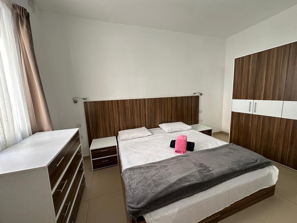 St Julians – A brand new, highly finished and fully furnished apartment in a very quiet area in The Village, St. Julians is available for rent. This beautiful, well-located property consists of a very large, open plan and fully equipped kitchen/living and dining area; a large master bedroom with an en suite; a spare bedroom with twin beds; main bathroom and a small washroom (with both a washing-machine and a tumble-dryer). The property is equipped with 3 ACs and 3 TVs. A smart family-owned apartment block, ideal for a couple.