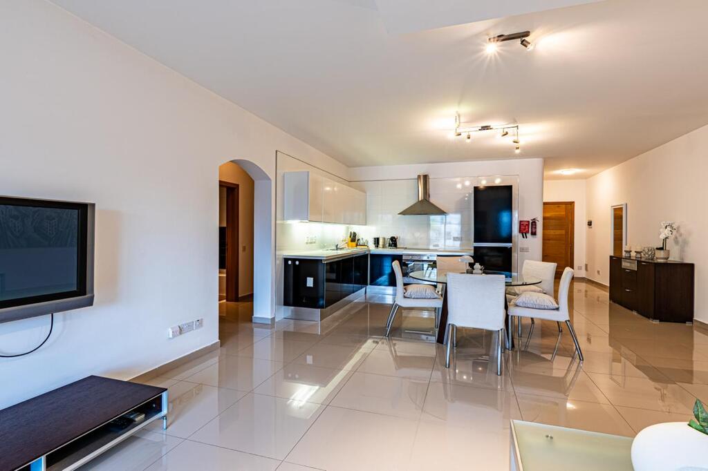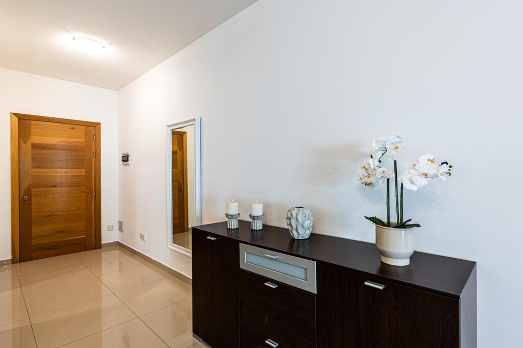 Modern apartment in the quiet area of Naxxar. The fully furnished residence features three spacious double/twin bedrooms – the main bedroom has a walk-in wardrobe.