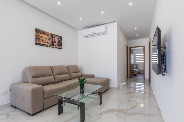 ST. JULIANS:- An opportunity has arisen to rent this recently refurbished first floor APARTMENT in the centre of St.Julians. Comprising a large open plan kitchen/living/dining, 2 double bedrooms, 2 bathrooms (1 en suite, 1 guest bathroom). Located just round the corner from Spinola Bay, 5 minutes from beaches, nightclubs, restaurants & a breath-taking promenade, this property is fully air-conditioned and equipped with all modern appliances, AC in the bedroom, washing machine, dryer, TV and wifi. Pet friendly.